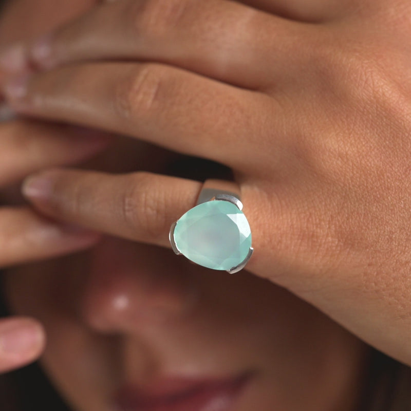 Original Tri-Cut Gemstone Ring - Sterling Silver / Aquamarine